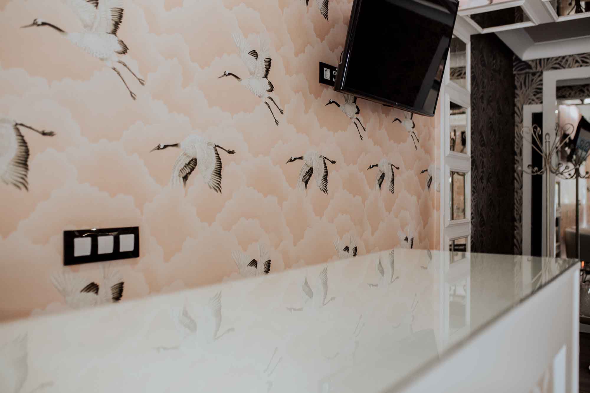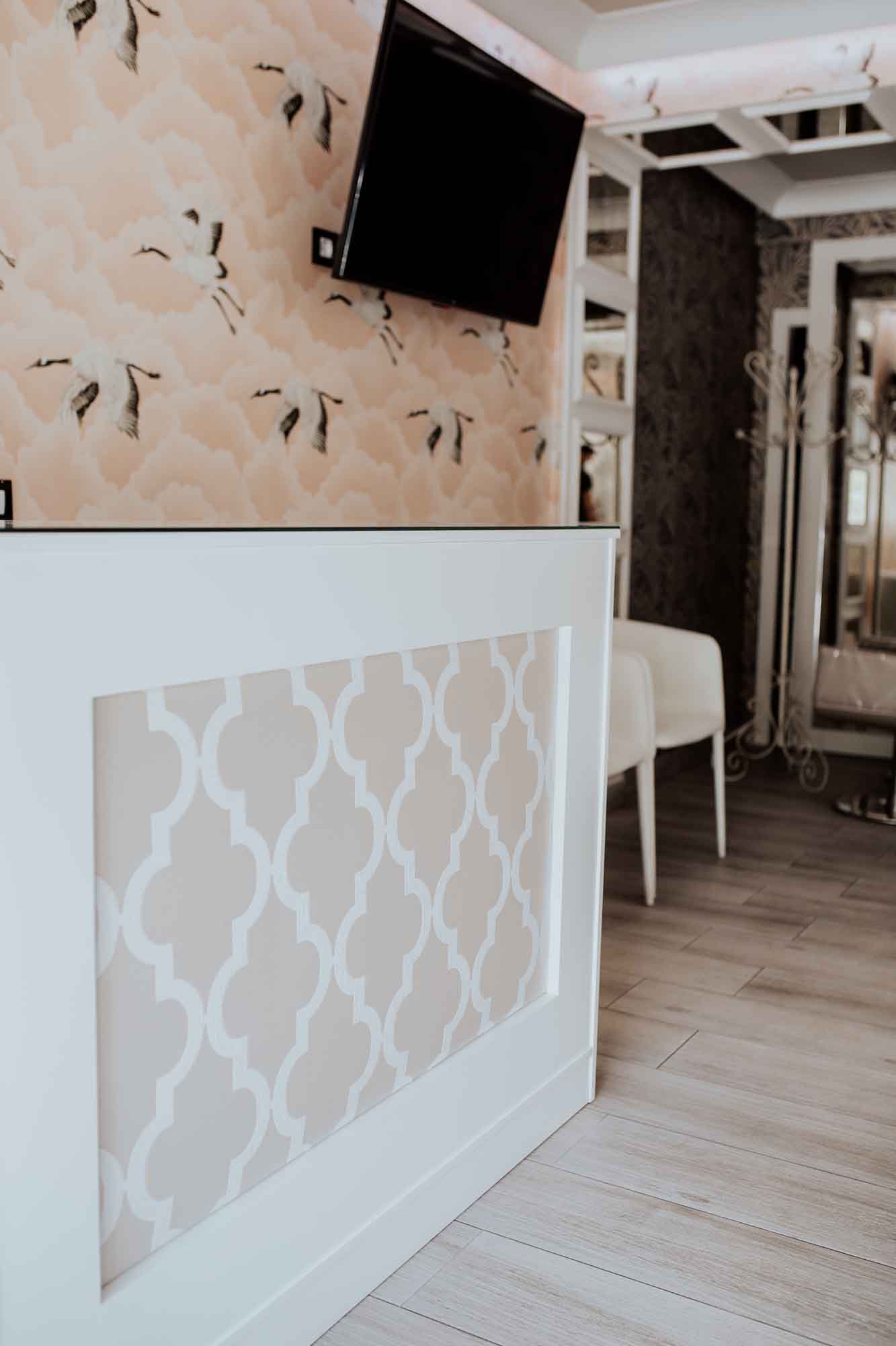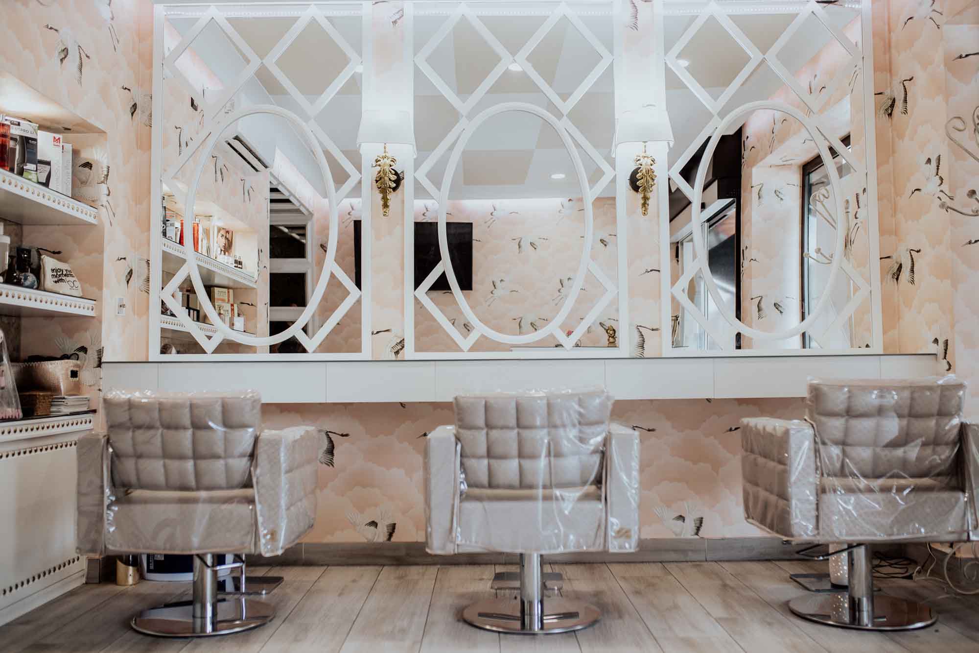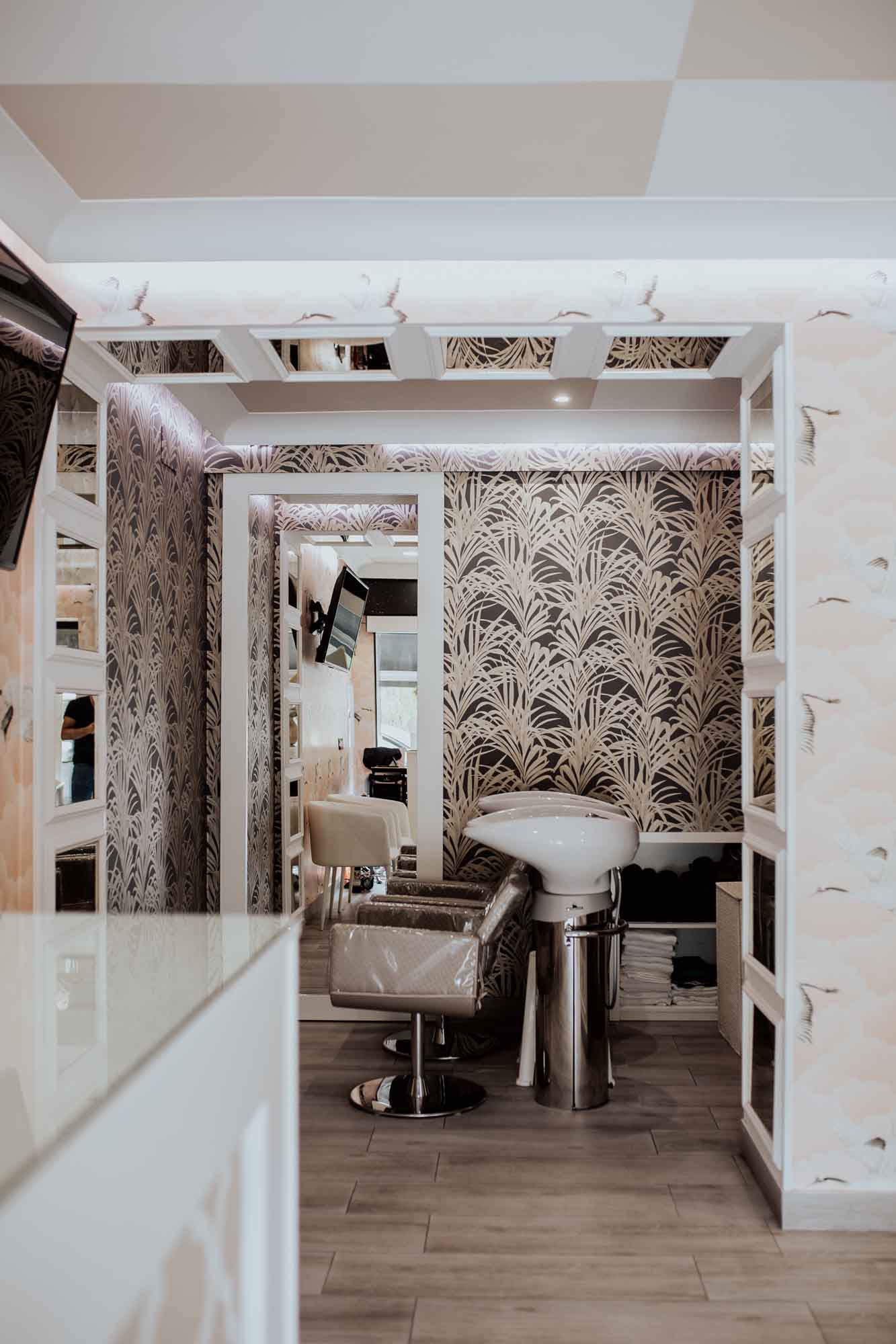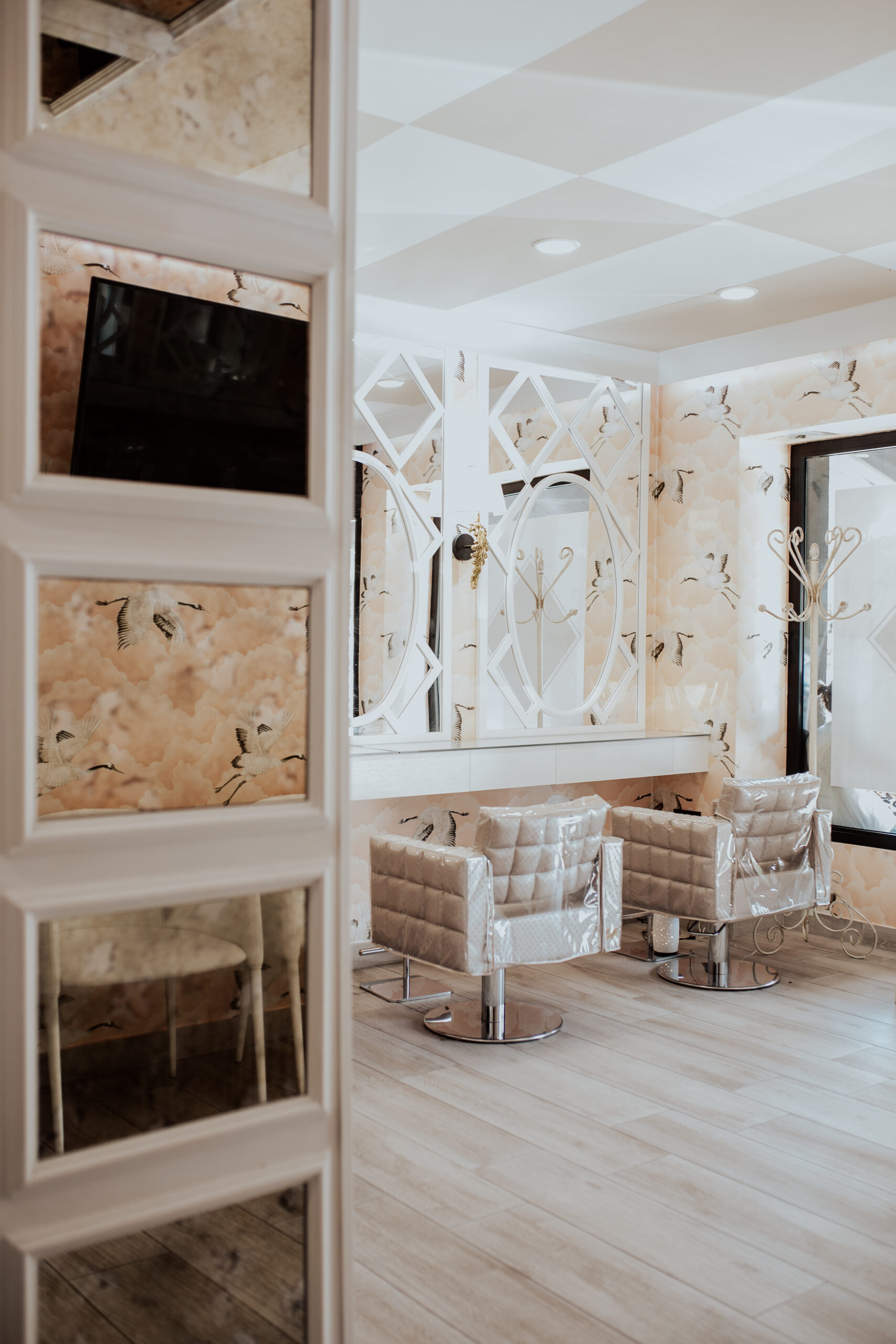 Esta peluquería chic irradia un encanto elegante con su paleta de tonos rosas suaves y elegantes detalles. El ambiente es sofisticado y acogedor, con espejos ornamentales y mobiliario contemporáneo de alta gama. Las luces tenues y las sillas de diseño proporcionan comodidad mientras se disfruta de tratamientos de belleza de primera clase. Cada rincón de este espacio está cuidadosamente diseñado para crear una experiencia de belleza y bienestar excepcional, donde el lujo y la moda se encuentran en perfecta armonía.
